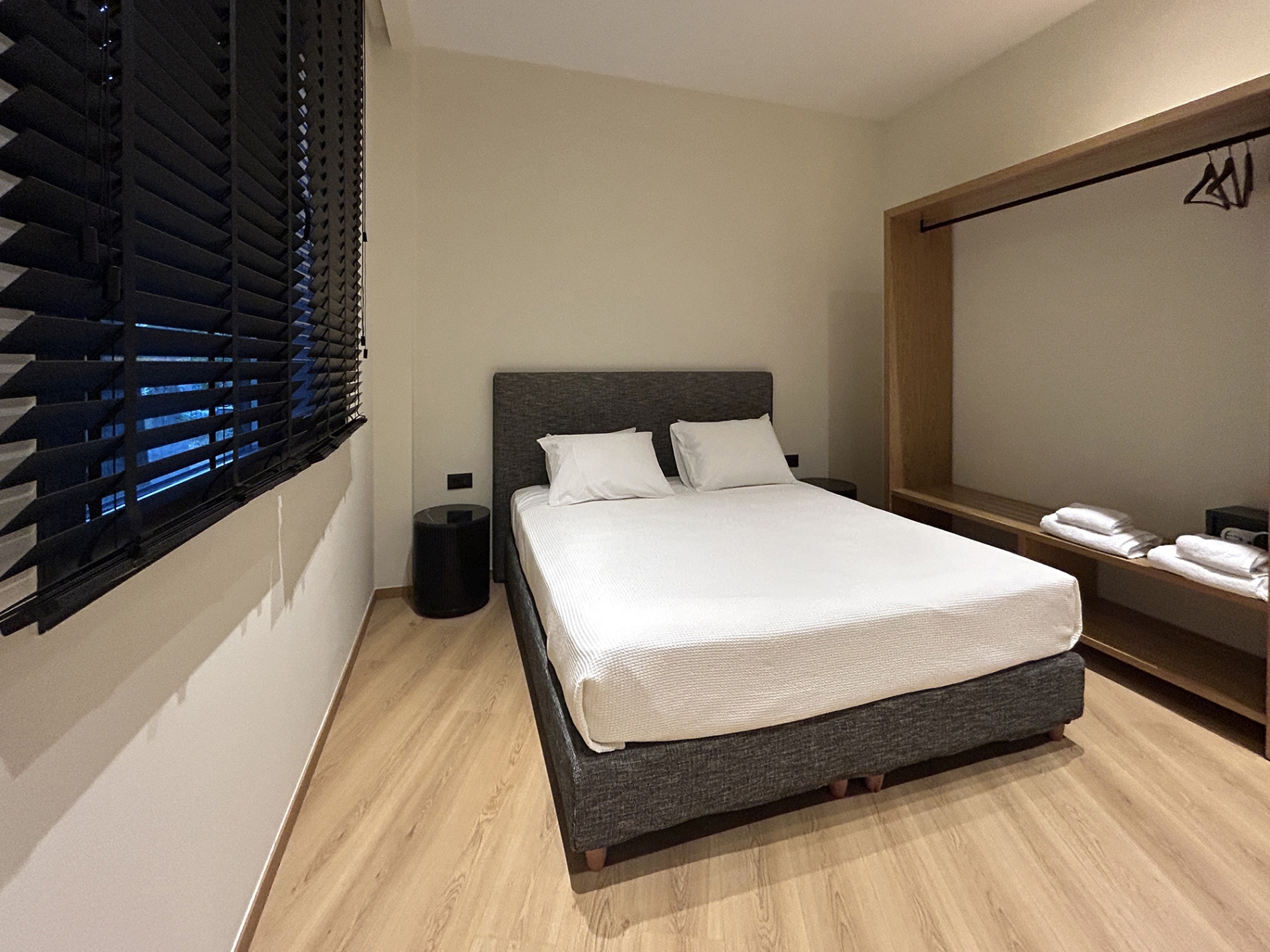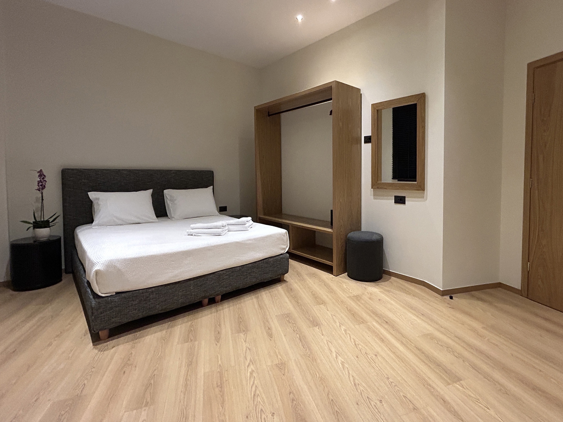 Καθεμία διαθέτει αναπαυτικά queen ή king size κρεβάτια, μοντέρνα μπάνια με ντουζιέρες τύπου βροχής, smart TV, Wi-Fi υψηλής ταχύτητας και επιλεγμένα amenities για επιπλέον ευκολία. Ορισμένες σουίτες προσφέρουν και κουζινάκι ή μηχανή espresso για όσους μένουν περισσότερο ή προτιμούν αυτονομία.