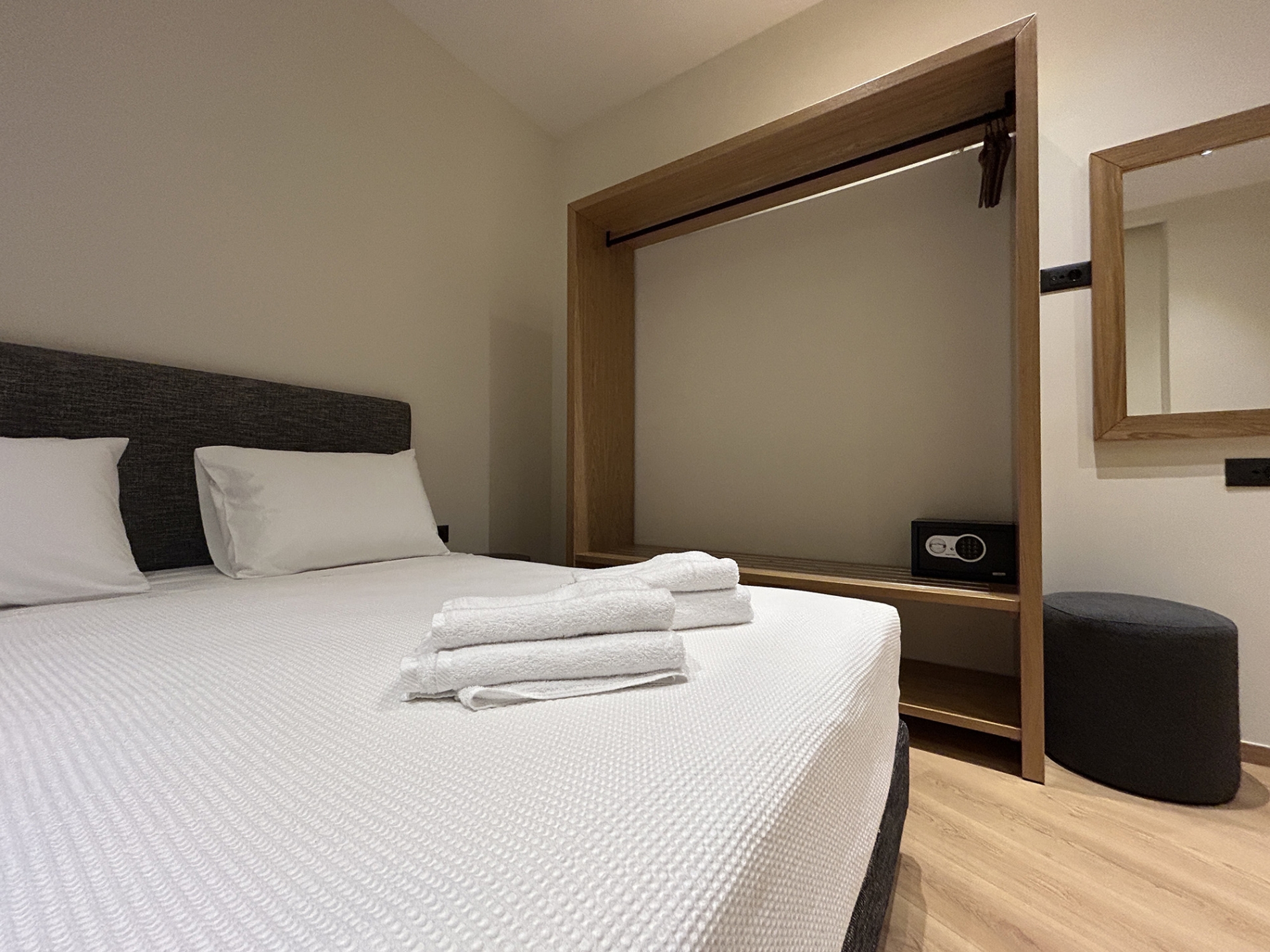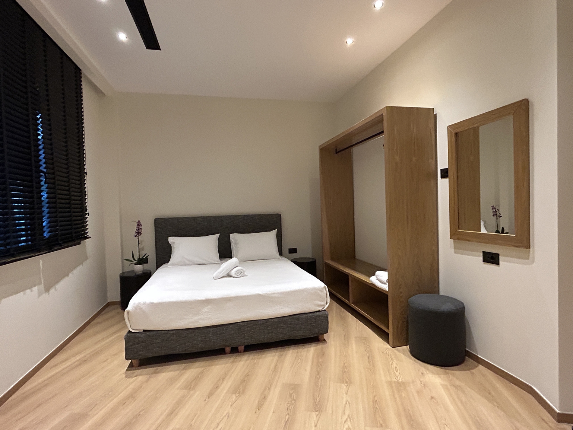 - Κρεβάτια king ή queen-size με ποιοτικά λευκά είδη